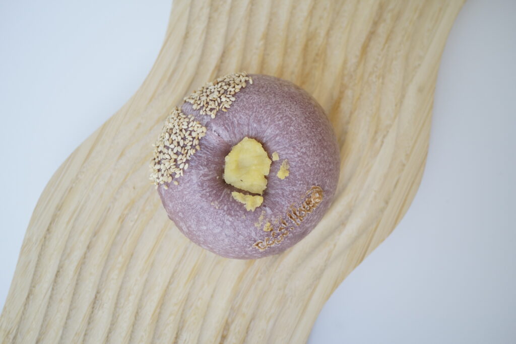 キュートな紫色のベーグルに、やさしい甘さのさつまいも餡がぎっしり。 見た目も味わいも、秋のほっこり感をぎゅっと包み込んだ一品です。